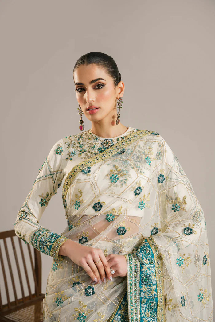 - Net Embroidered Sleeve & Sari Border - 11 yards