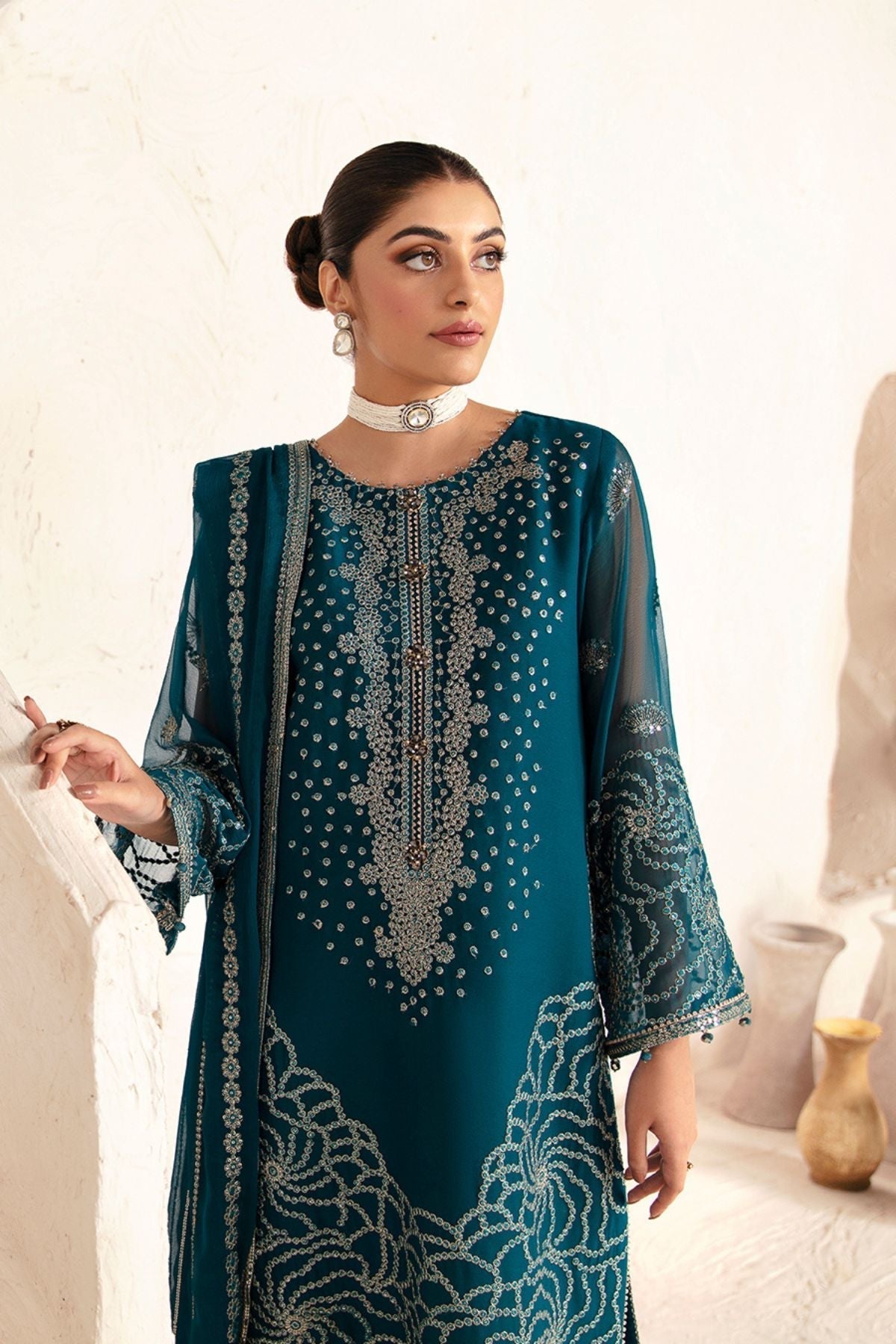 Embroidered Chiffon Front Kali