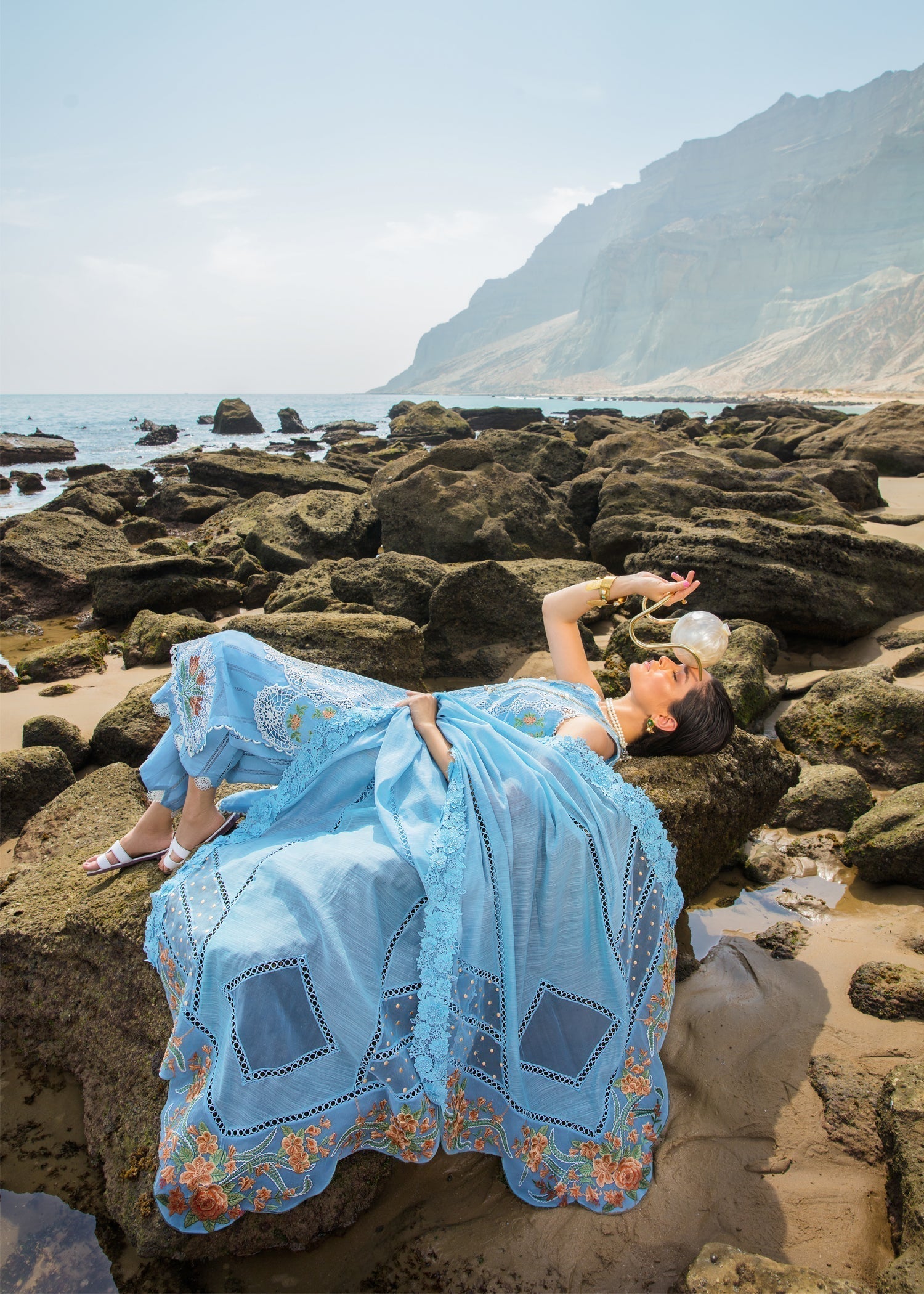 - 0.8 meters Organza with Embroidered Floral Motifs for Daman