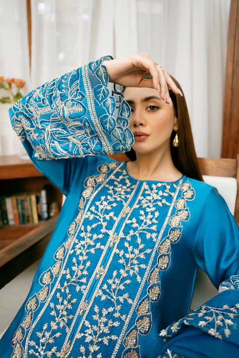 Type: Premium Silk Embroidered & Hand Embellished Shirt and Trouser with Embroidered Organza Dupatta