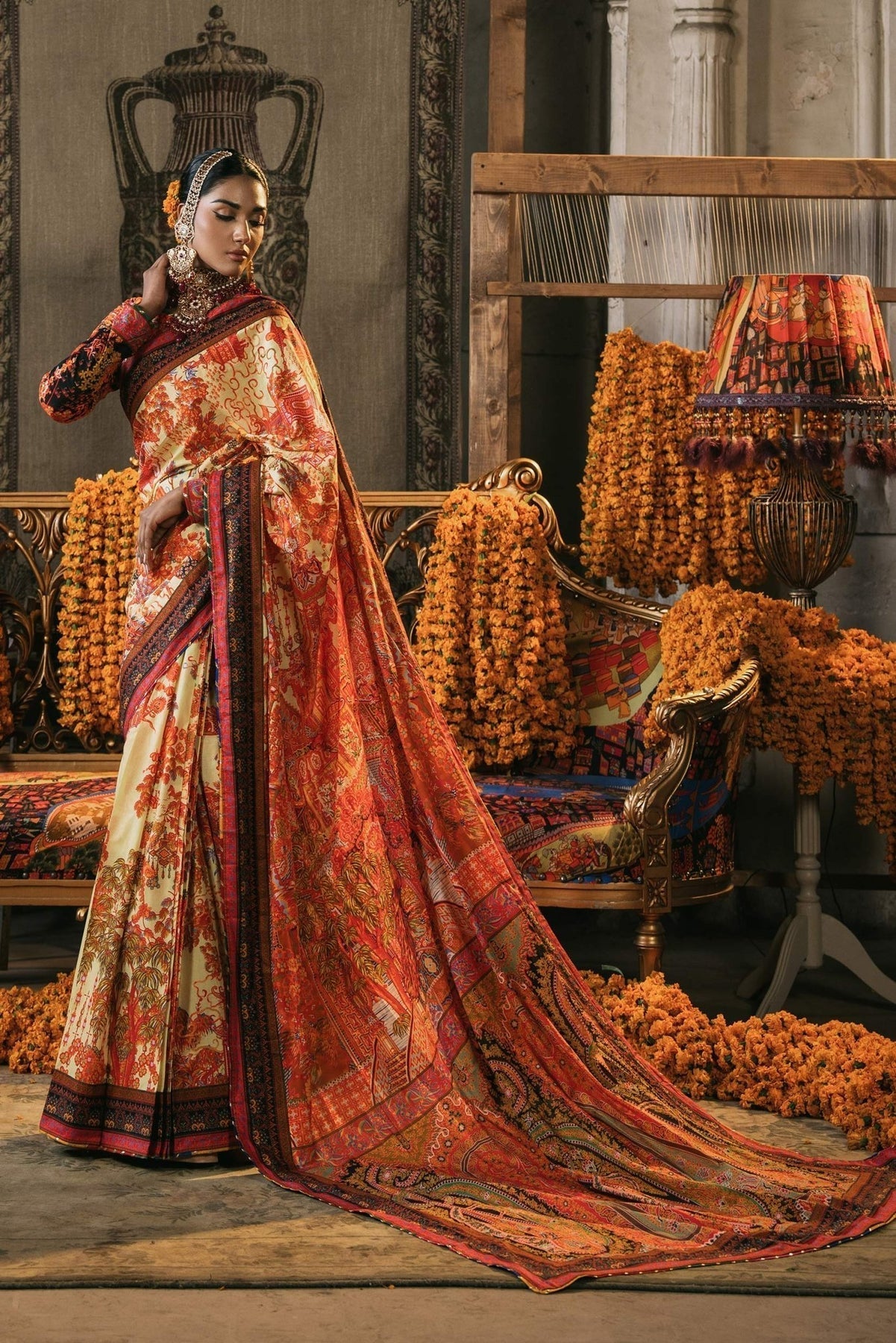 Indulge in timeless elegance with our Crew Neck Saree. Crafted from premium digitally printed lawn fabric, the blouse features a classic crew neckline and graceful full sleeves, accented with delicate chatta pati lace for a refined touch. Paired with a matching lawn petticoat, this ensemble effortlessly blends sophistication and charm.
