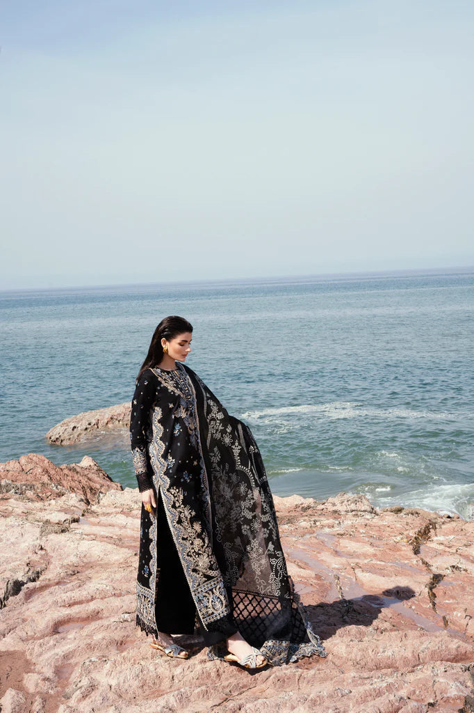 Dyed embroidered frontDyed embroidered backDyed embroidered sleevesEmbroidered border front & back hemEmbroidered border for sleevesEmbroidered border for dupatta palluEmbroidered border for front& back side slitsBlock printed khaadi net dupattaCheck jacquard dupatta extensionsEmbroidered border for dupattaDyed cambric trouser