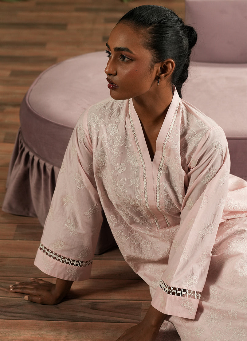 The Pink Cotton Embroidered Kurta from our Spring The Tea '25 Collection features a straight silhouette, V neckline, and full-length embroidered sleeves.€‹