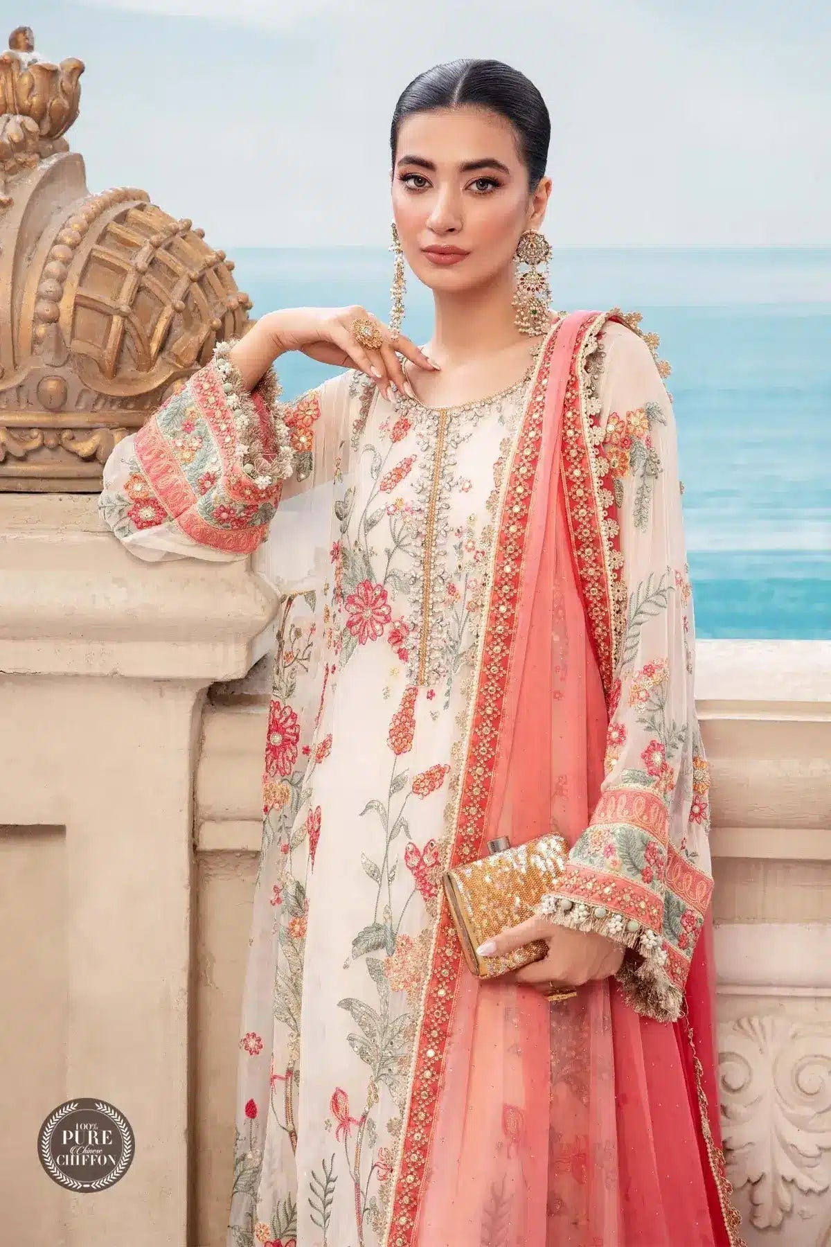 Maria B | Luxury Chiffon Collection | Cloud White Floral