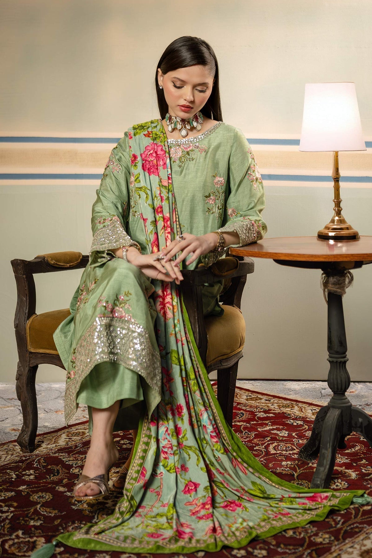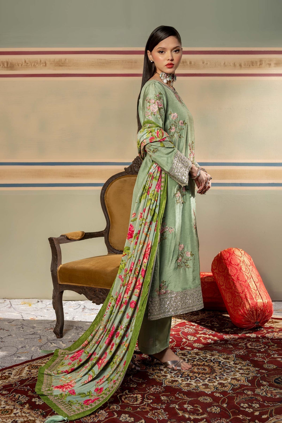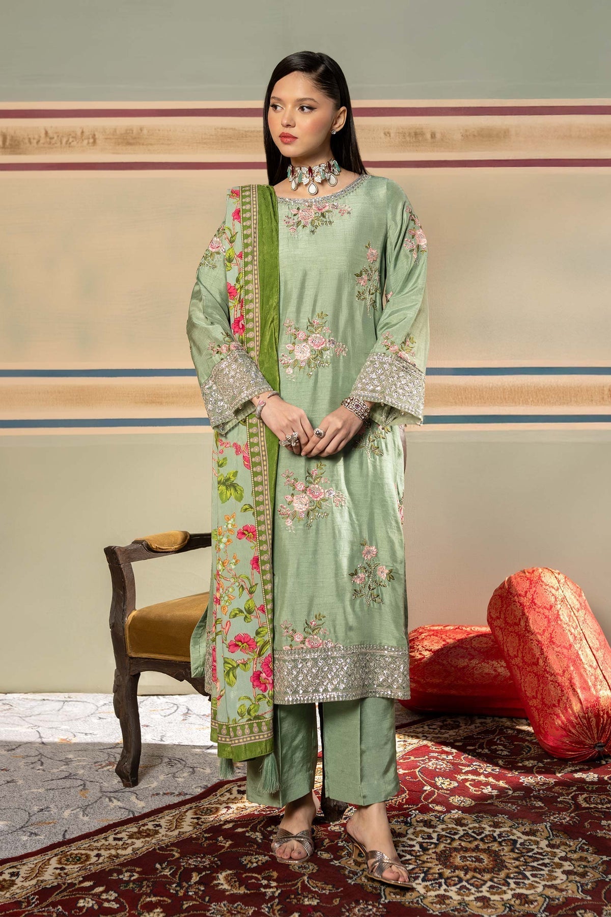 Embroidered Raw Silk Front & Sleeves 2 Meter