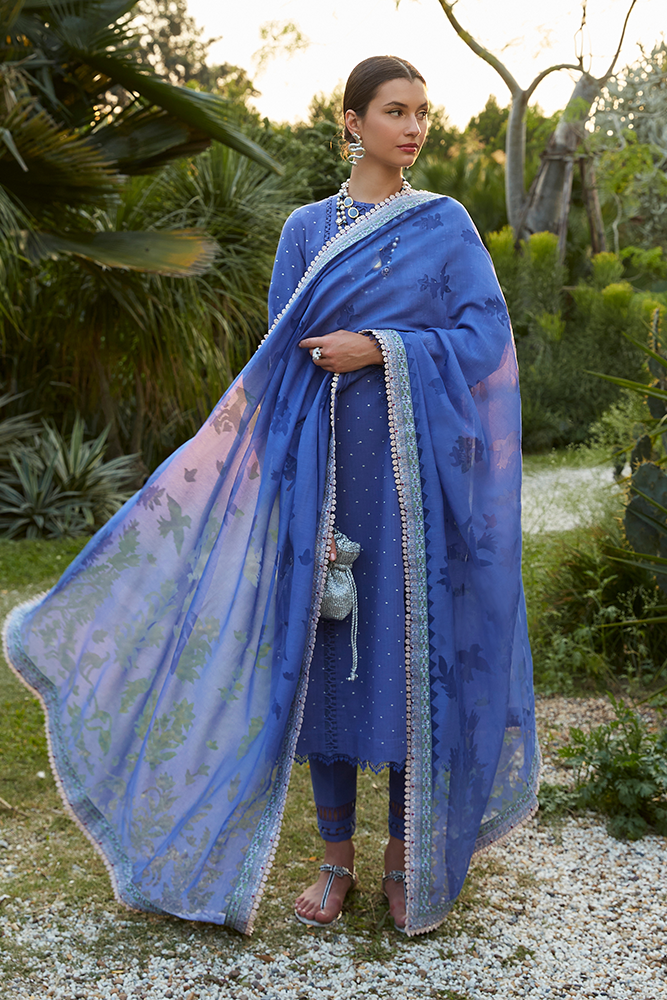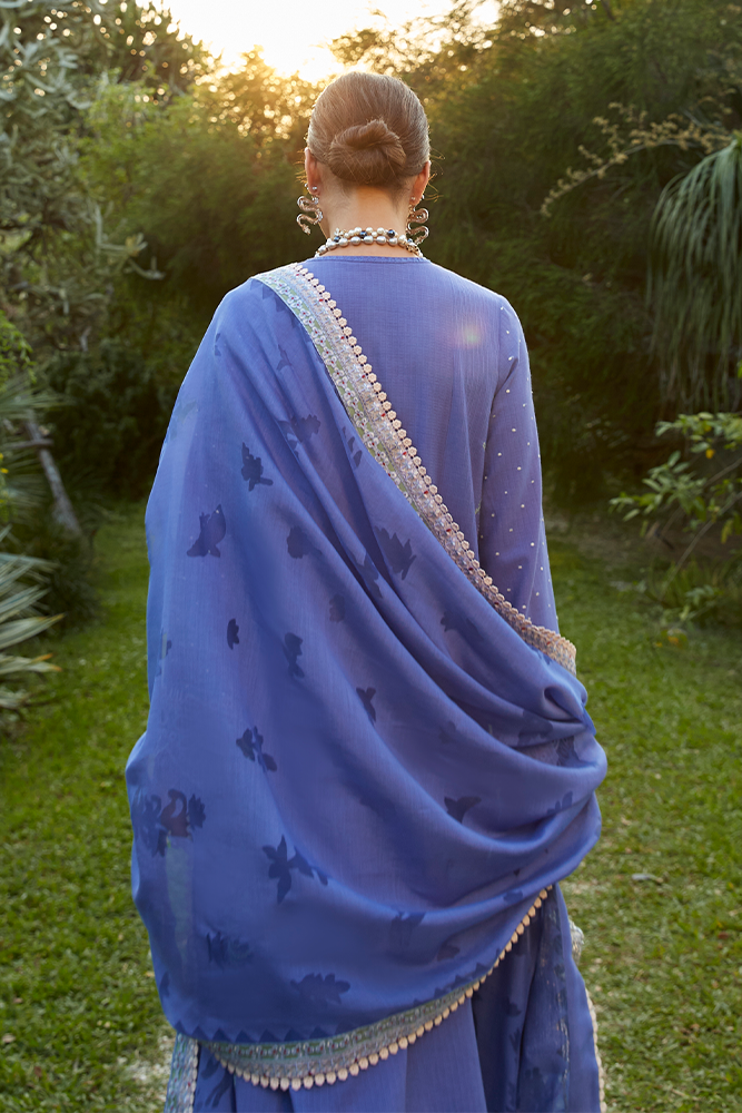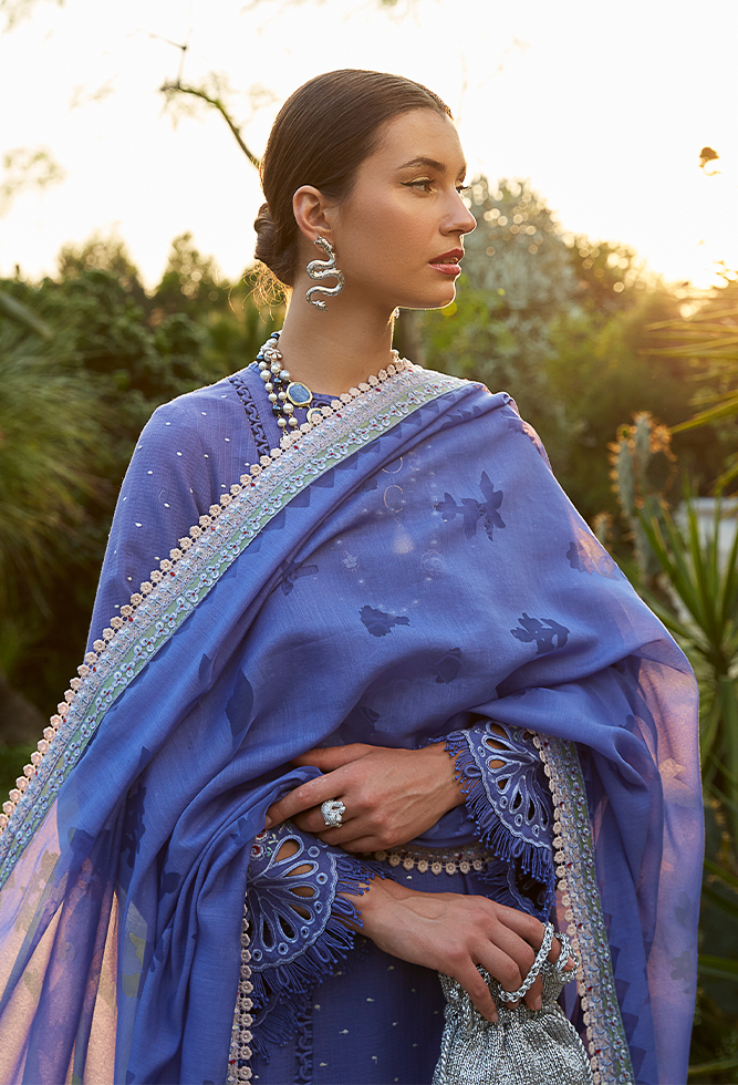 - BURNOUT DUPATTA WITH LACE FINISHES.