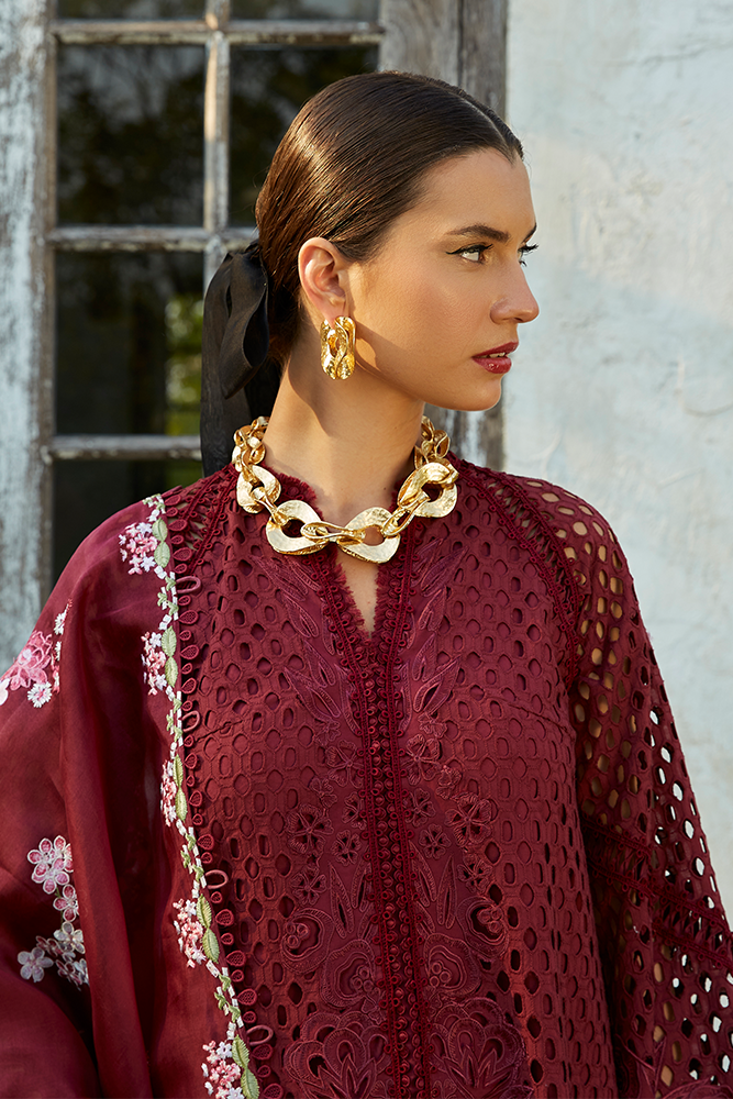 - ORGANZA EMBROIDERED DUPATTA WITH STRAIGHT PANTS.