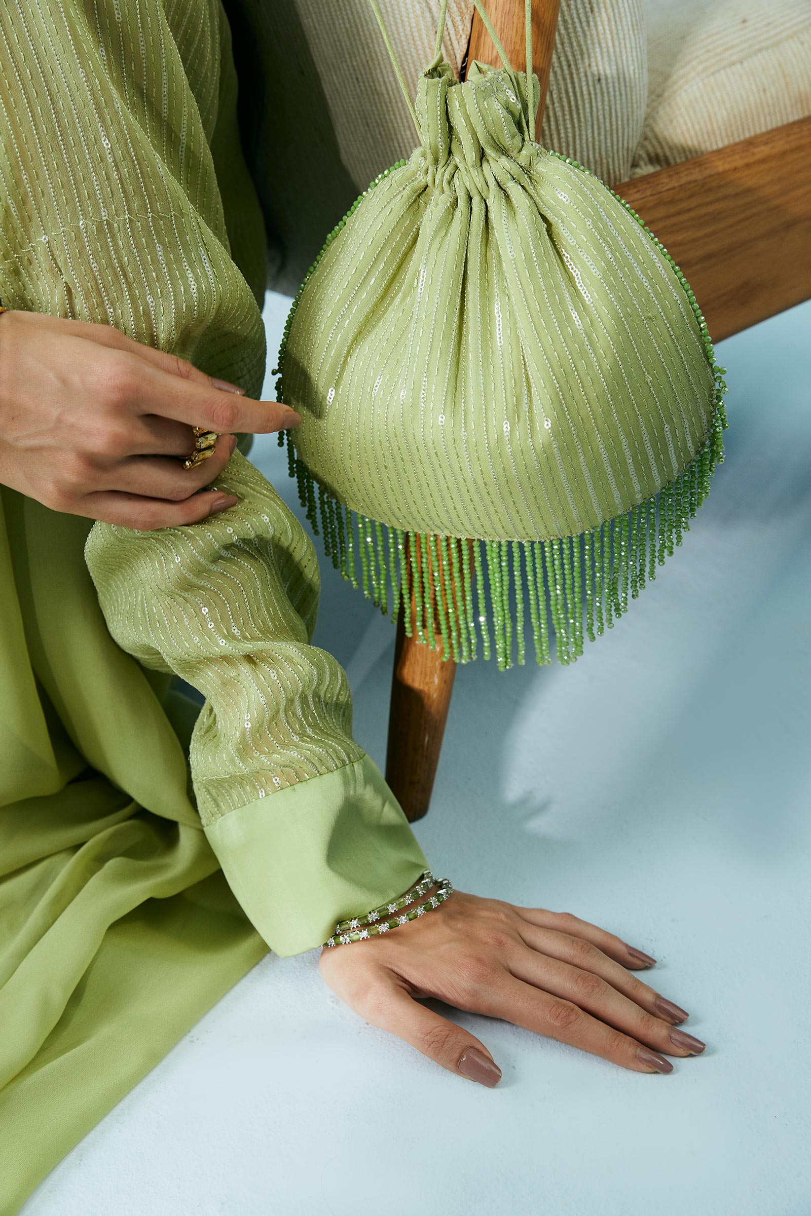 This alluring look features a sequin embroidered shirt with gold button details and is paired with a thin strap slip with straight trousers and a dupatta with silk finishes.