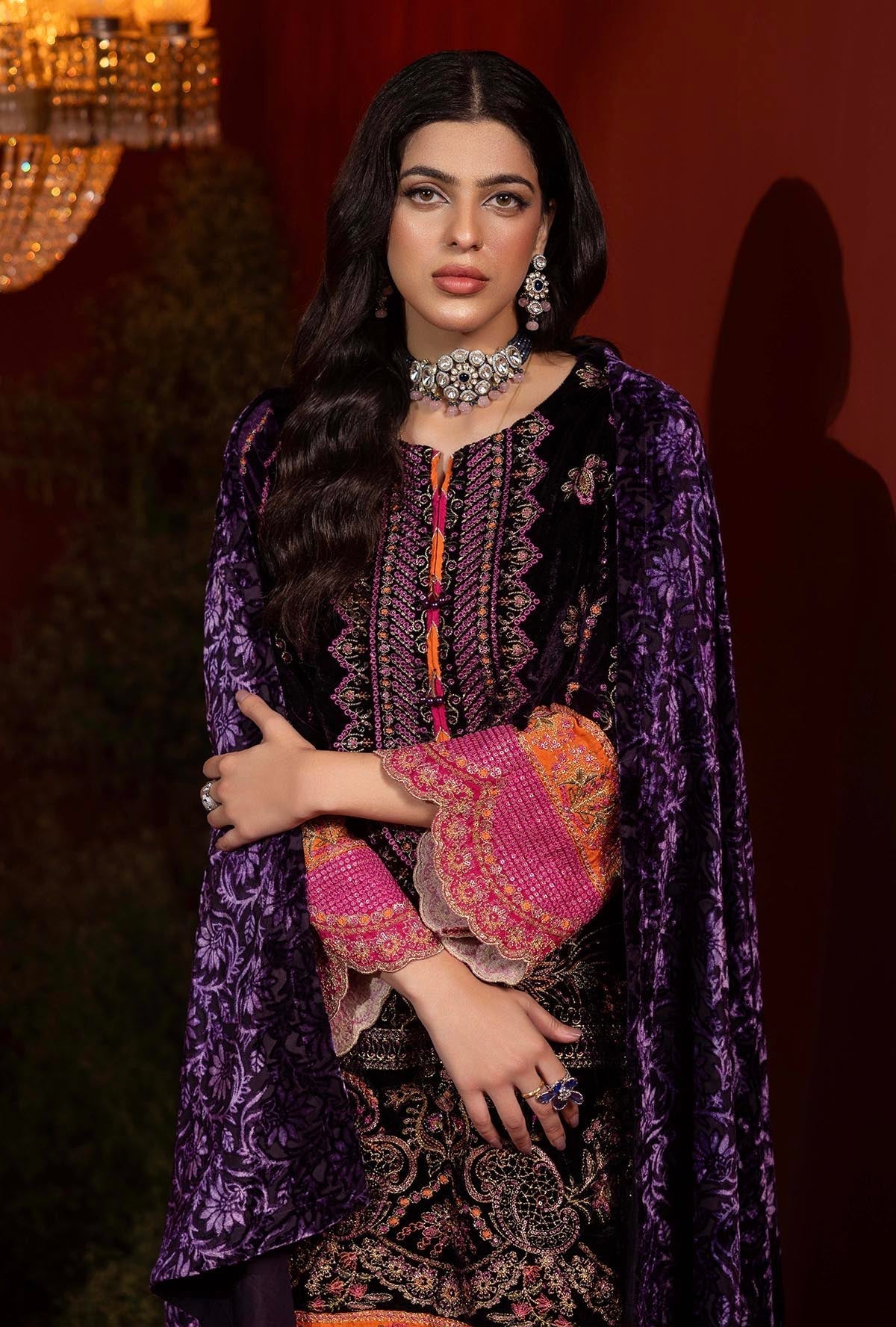 Embroidered Velvet Front 0.8 MTREmbroidered Velvet Back0.8 MTREmbroidered Velvet Sleeves 0.66 MTRPlachi Velvet Shawl 1 PCDyed Raw Silk Trousers 2.5 Yard