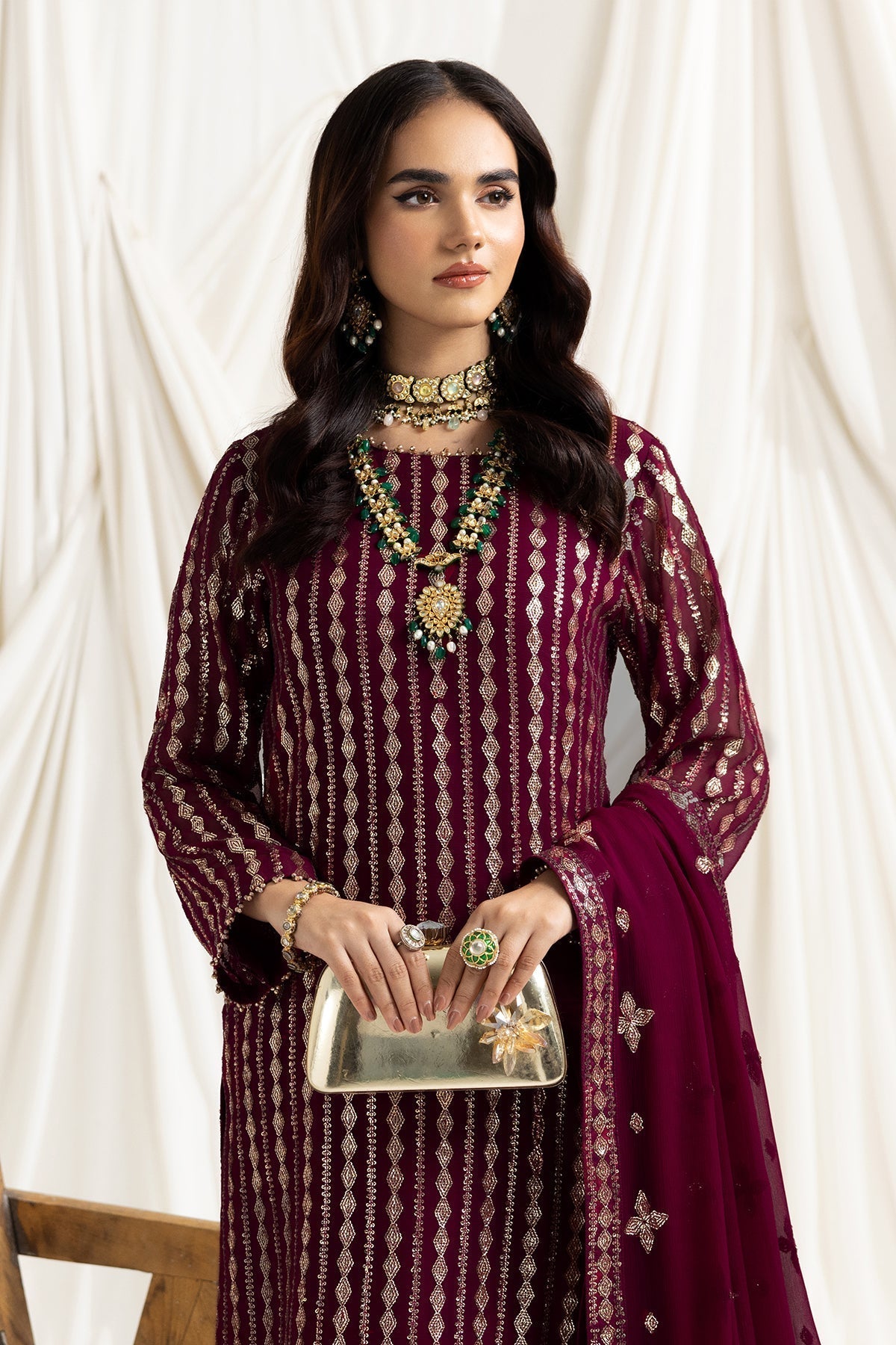 - Stitched includes Shirt, Lining, Dupatta and Trouser all embellished as shown in pictures.