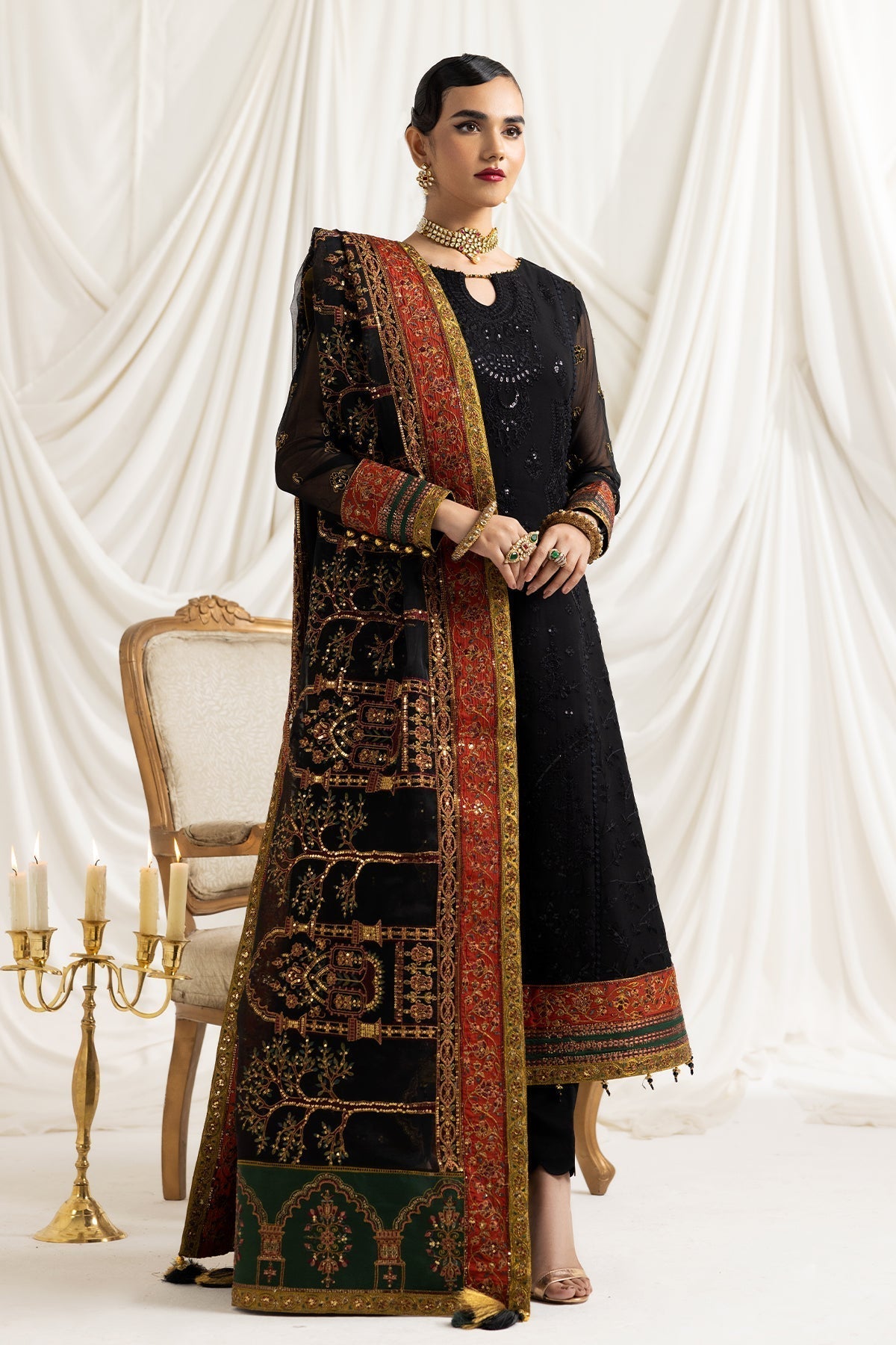 Embroidered Chiffon Kali