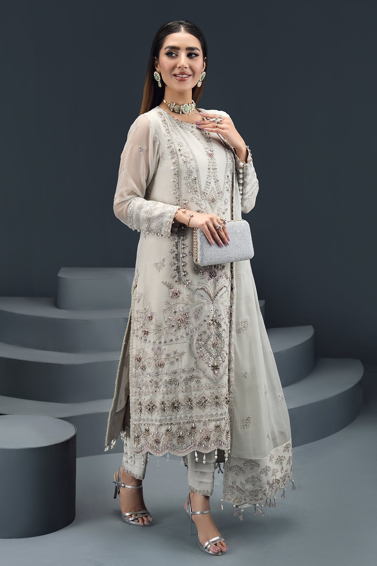 Embroidered Hand Embellished Chiffon Front