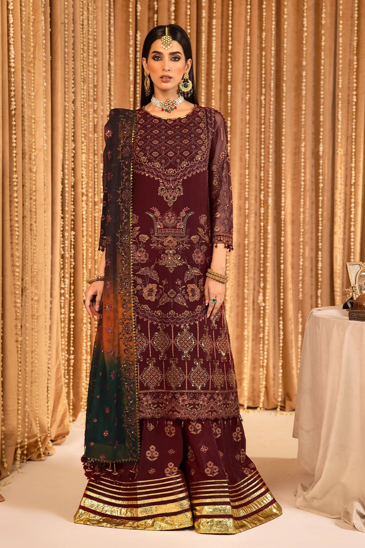 ALIZEH-Roheen - V16D01 Embroidered Chiffon Maroon