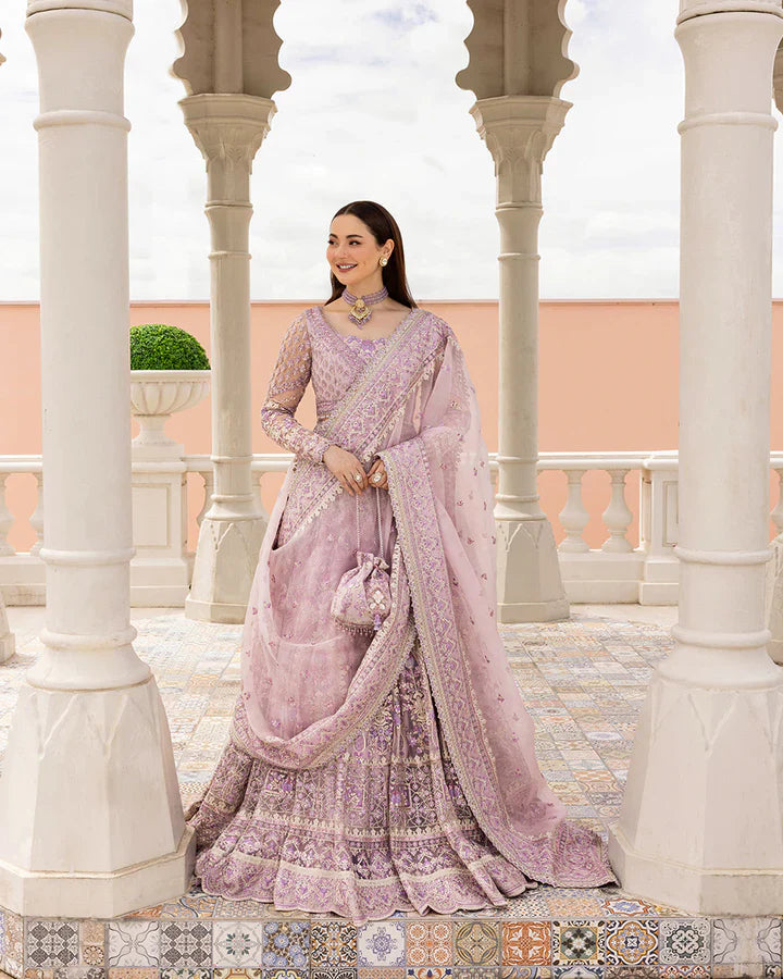 Reflecting timeless elegance, Anysia is a sight to behold. Crafted on delicate lilac net, the lehenga and choli are generously embellished with intricate resham and sequin motifs fashioned in delicate floral patterns. This set is paired with a buttery soft, embroidered organza dupatta making it the perfect festive piece that highlights impeccable artistry and craftsmanship and sets you apart from the crowd.