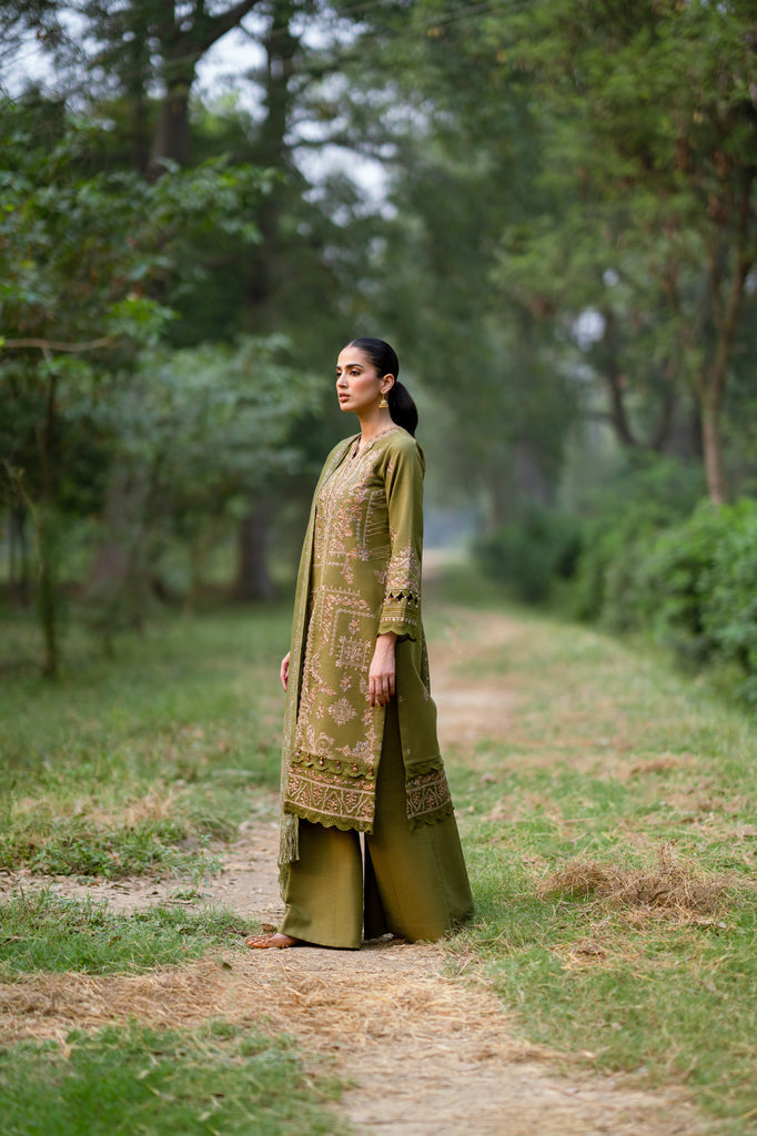 Dyed Embroidered Left Panel 1 PcDyed Embroidered Right Panel 1pcDyed Embroidered Back 1.15 MtrEmbroidered Border For SleevesEmbroidered Border For Front & Back HemDyed Trouser 2.5 MtrDigital Printed Pure Pashmina Shawl (100%)