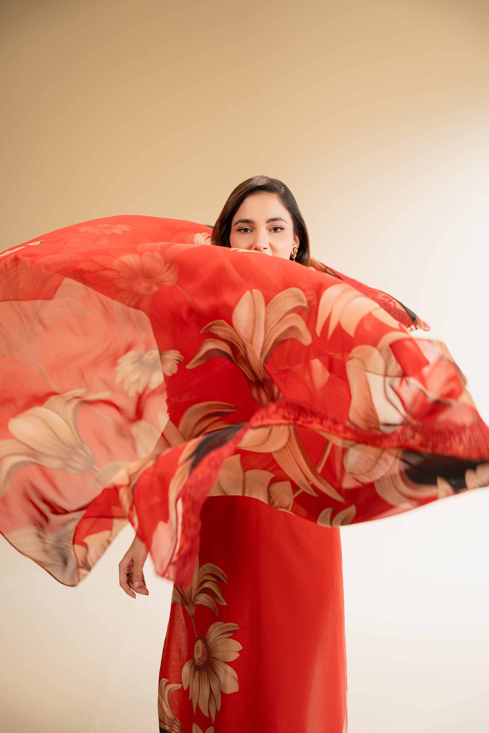 Digital Printed Smokey Georgette Dupatta: 2.6 Meter